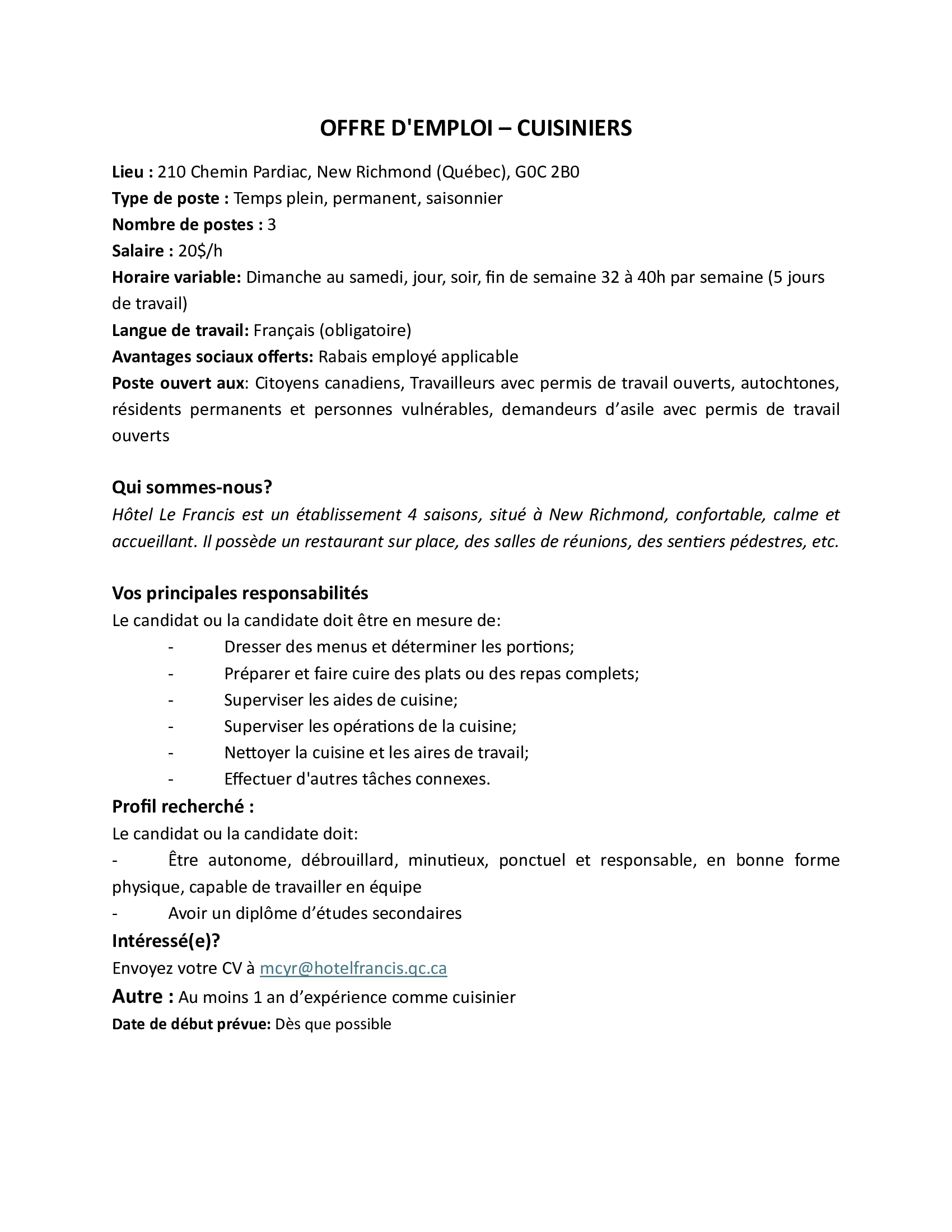 Offre d’emploi